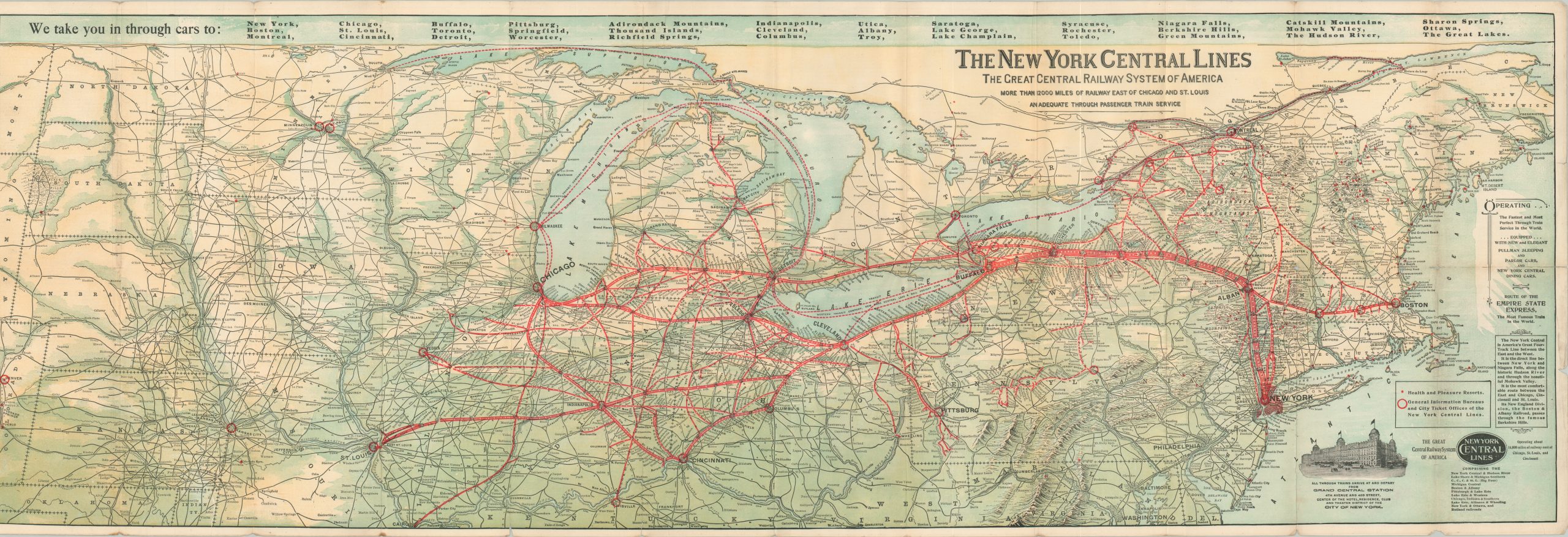“This folder is intended to briefly touch upon a few of the great health and pleasure resorts reached by the magnificent through trains of the New York Central Lines, and if a perusal of these pages in connection with the map on the reverse side – which is believed to be the most complete and comprehensive of any map ever issued embracing this territory – shall add to your stock of information concerning the localities mentioned, or shall induce you to embrace one or more of them in your vacation trip, or contribute in any way to the pleasure of your summer outing, it will have fulfilled its mission and accomplished the result intended.”