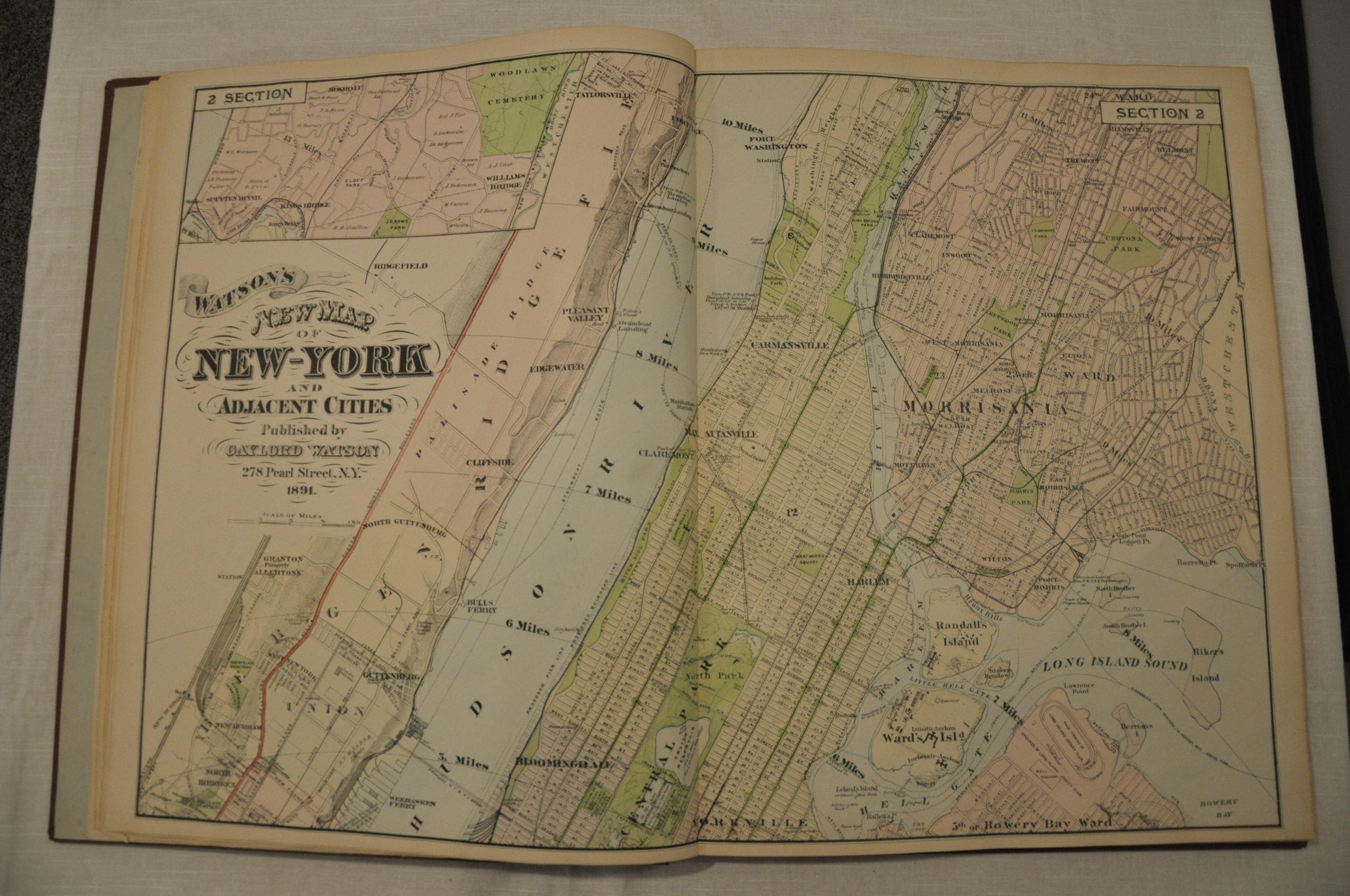 This fascinating atlas shows a section of land about 8 miles in width along the Hudson River Valley between New York City and Troy. An index map shows the organization of the following 35 double page maps, which are generally drawn to a scale of 1200 feet to the inch (with the exception of New York City).