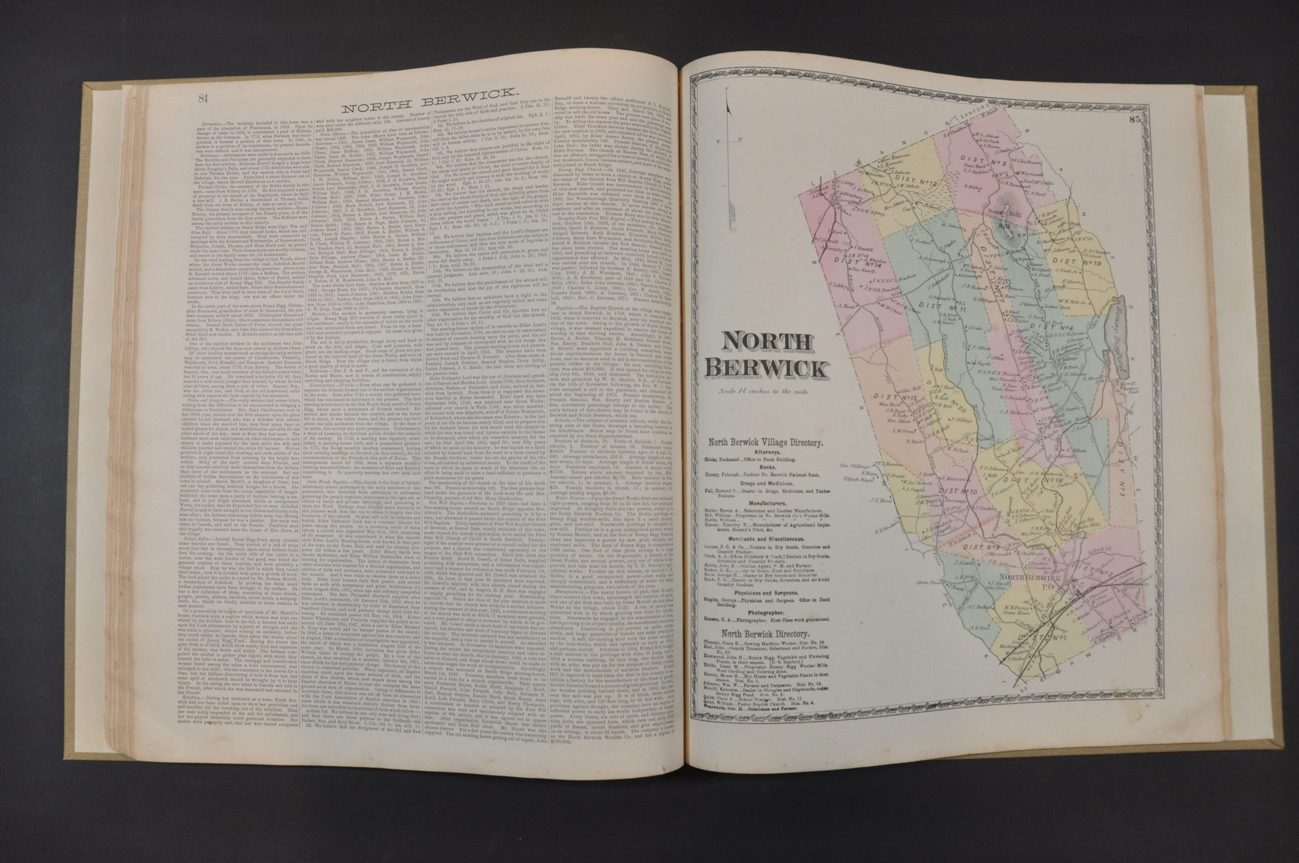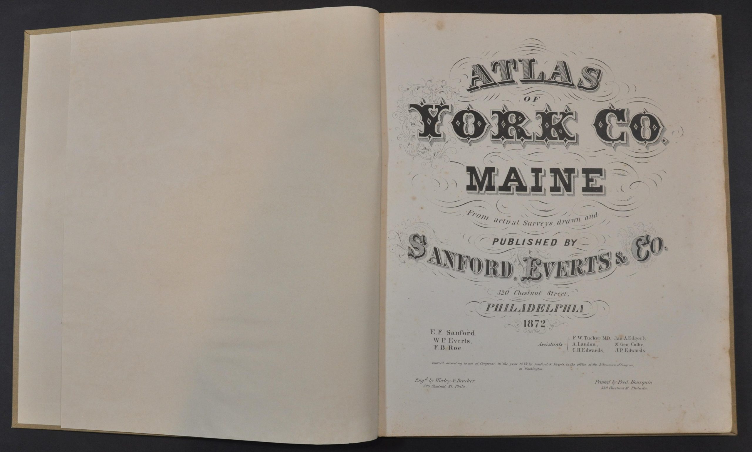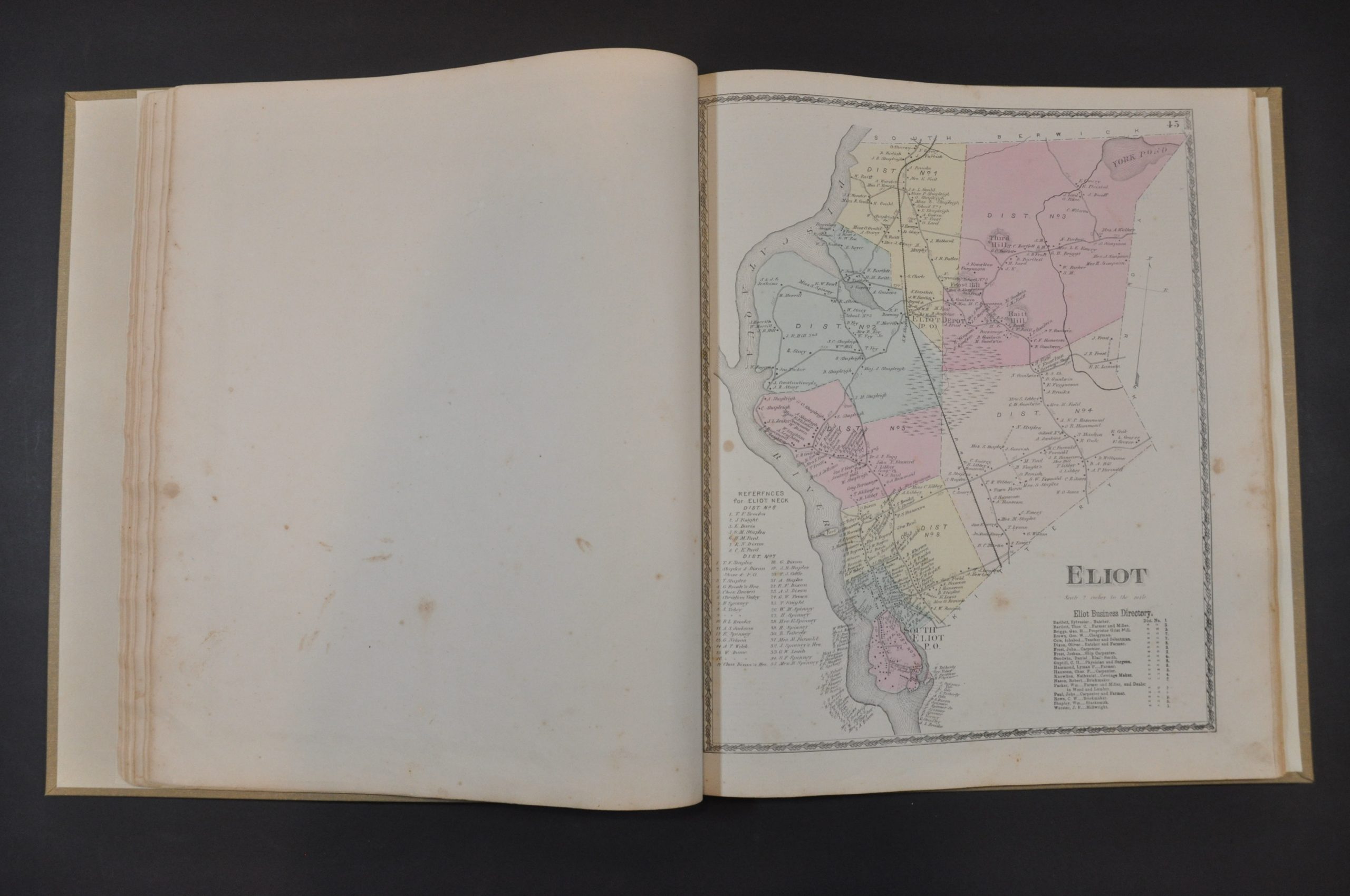This incredible atlas provides a thorough overview of York County, Maine near the end of the 19th century. The county, one of the oldest in the nation, is located in the southwestern part of the state and is divided by the Salmon Falls River.