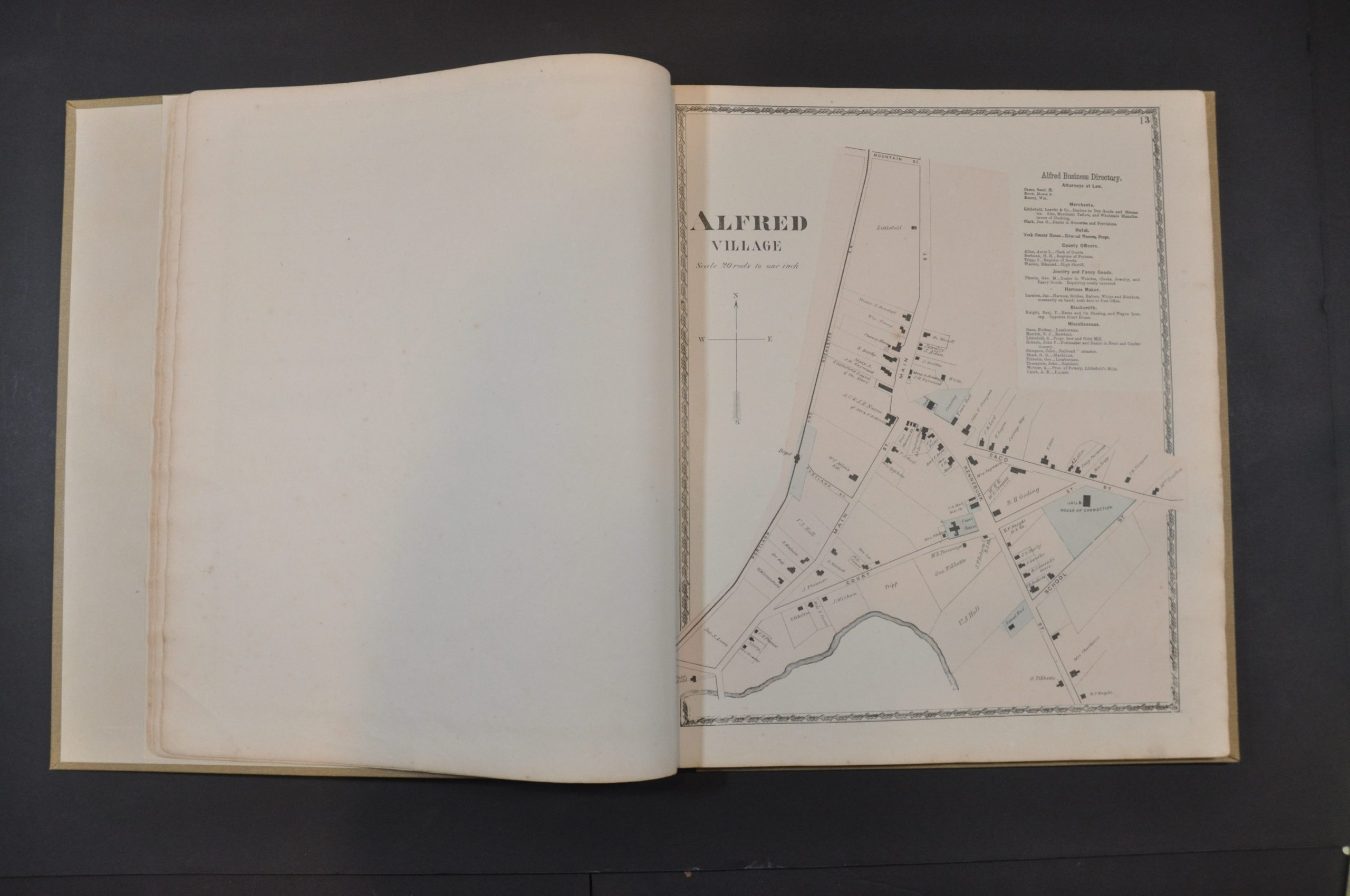 Historical sketches provide fascinating background information about many of the referenced communities. Numerous maps include business directories and lists of local patrons. This likely refers to the list of residents and business people who ‘subscribed’ to the publication of the atlas by providing funds up-front to defray the costs. This was a common method of publishing county atlases in the late-19th century. For a set fee, subscribers were among the first to receive the finished work and often had the opportunity to pay extra for custom additions. As a result, many examples of county atlases include portraits of individual patrons, views of personal residences and businesses, and even images of prize farm animals!