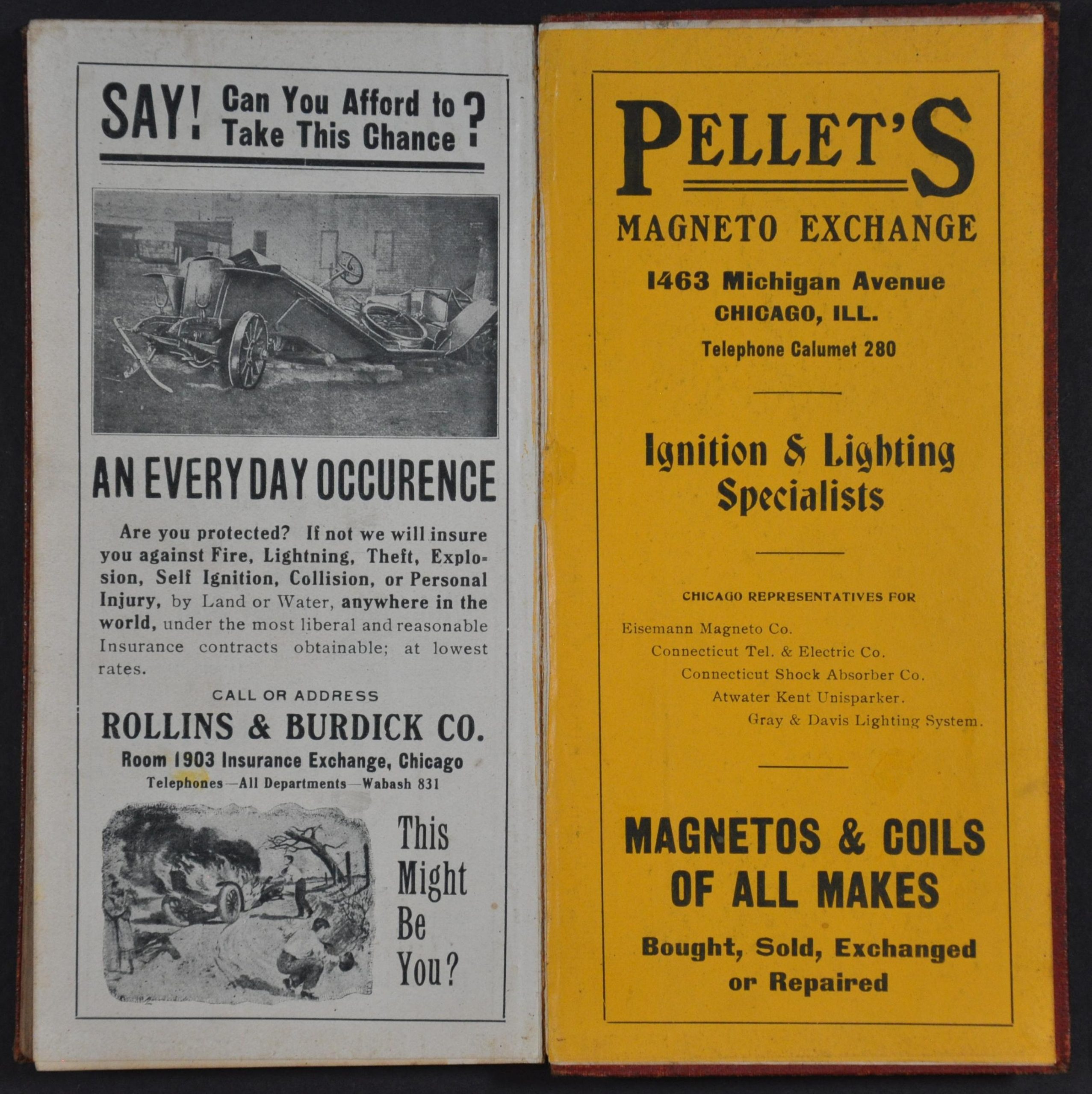 The rare volume is a fascinating relic from the early days of automobile tourism; when persistent mechanical issues, poor roads, and a lack of traveler amenities made motorists more akin to trailblazers than pleasure-seekers. As of March 2025, WorldCat lists only one example of the 1909 edition, at the Chicago History Museum (possessor of the only 1913 edition, as well). OCLC# 270741559.