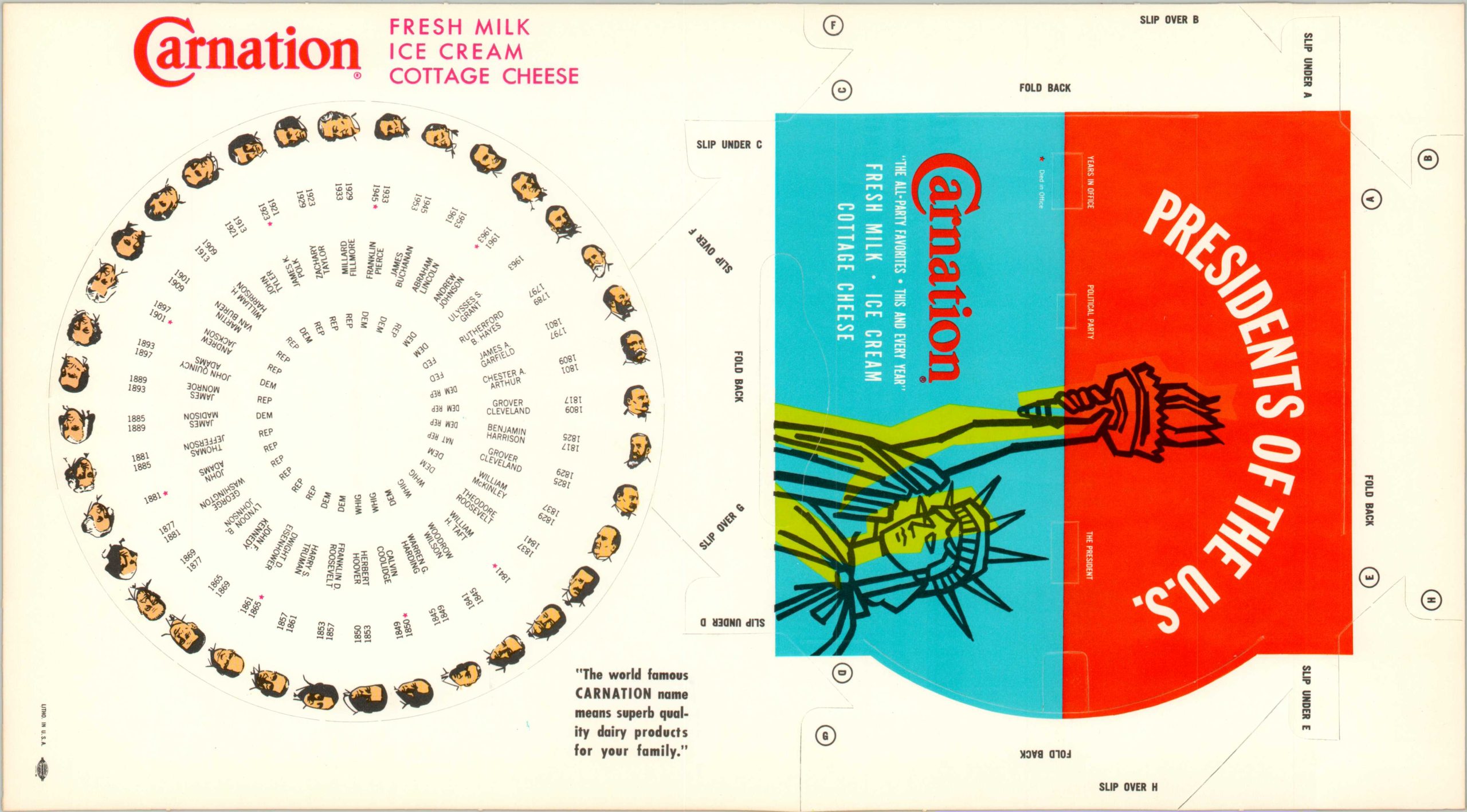 “The world famous CARNATION name means superb quality dairy products for your family.”