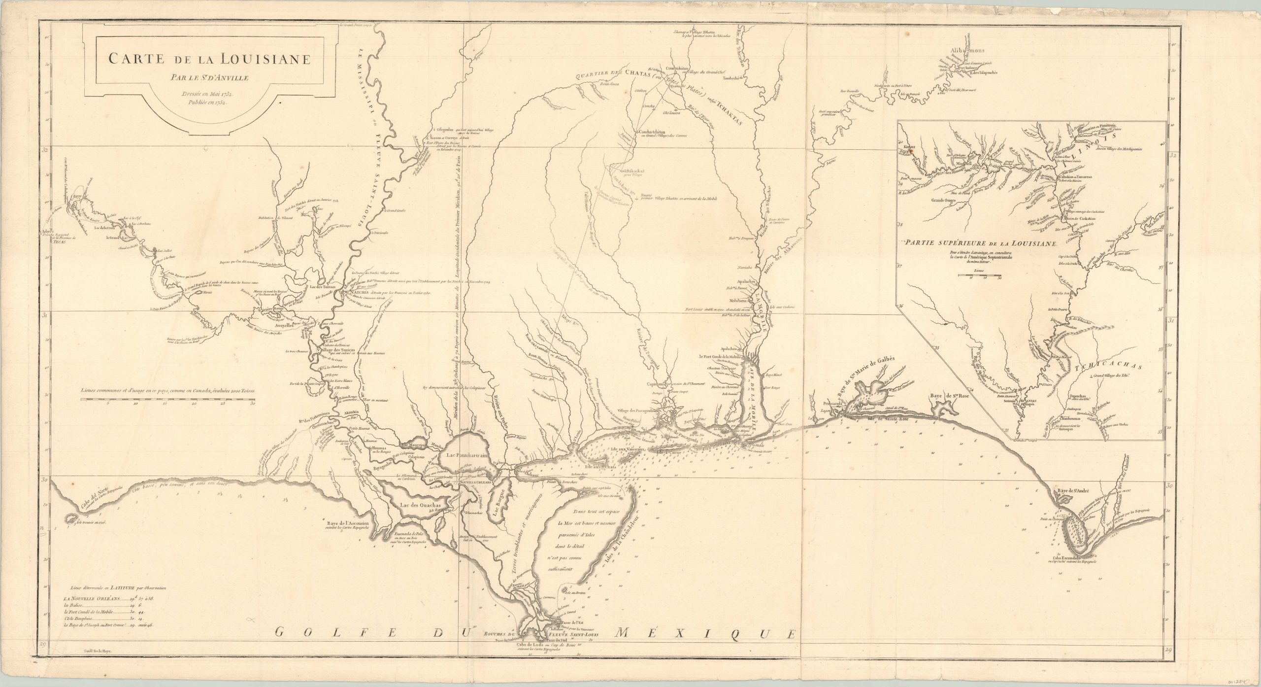 Though the map was published in 1752, it was drawn roughly twenty years earlier and outlines the situation shortly after the Natchez Revolt. This attack on French inhabitants at Fort Rosalie by the local Native American Natchez tribe saw over 200 colonists killed, and resulted in the transfer of the Louisiana colony from the Company of the Indies to the French crown in 1731. Several references to the ongoing conflict are noted within the image, including the retaliatory destruction of the Grand Village of the Natchez.