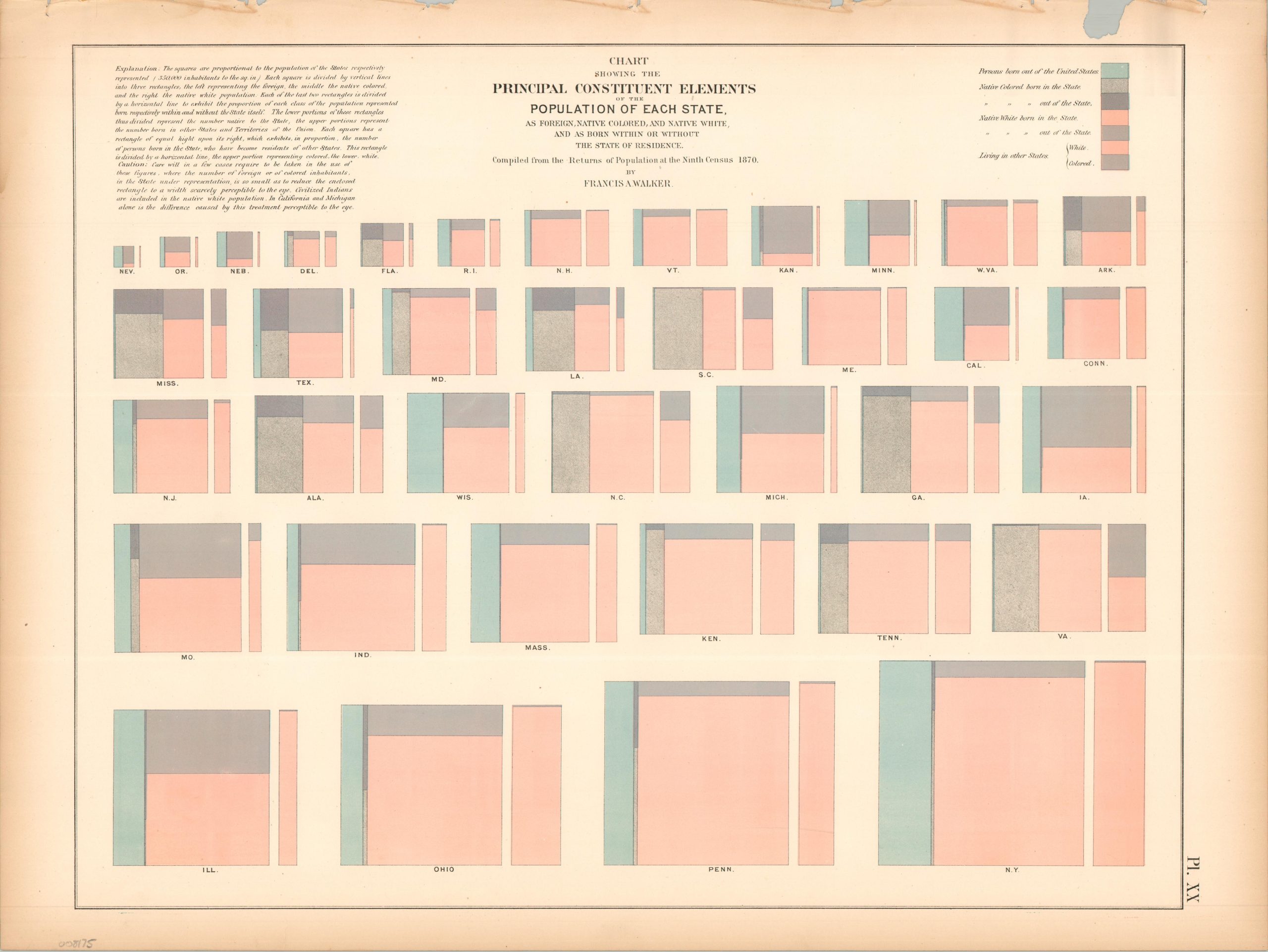 The chart was originally issued as part of The Statistical Atlas of the United States Based on the Results of the Ninth Census, 1870, compiled by Census Superintendent Francis A. Walker. Lithographed by Julius Bien and published in 1874.