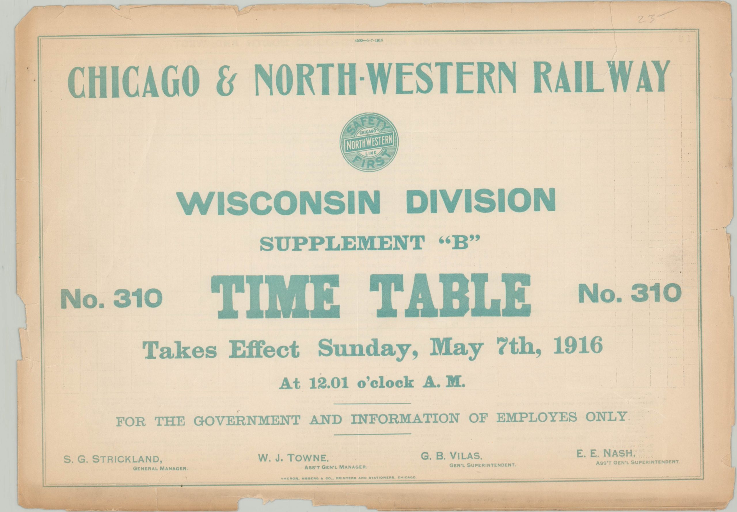 Chicago & Northwestern Railway Wisconsin Division Supplement ‘B’