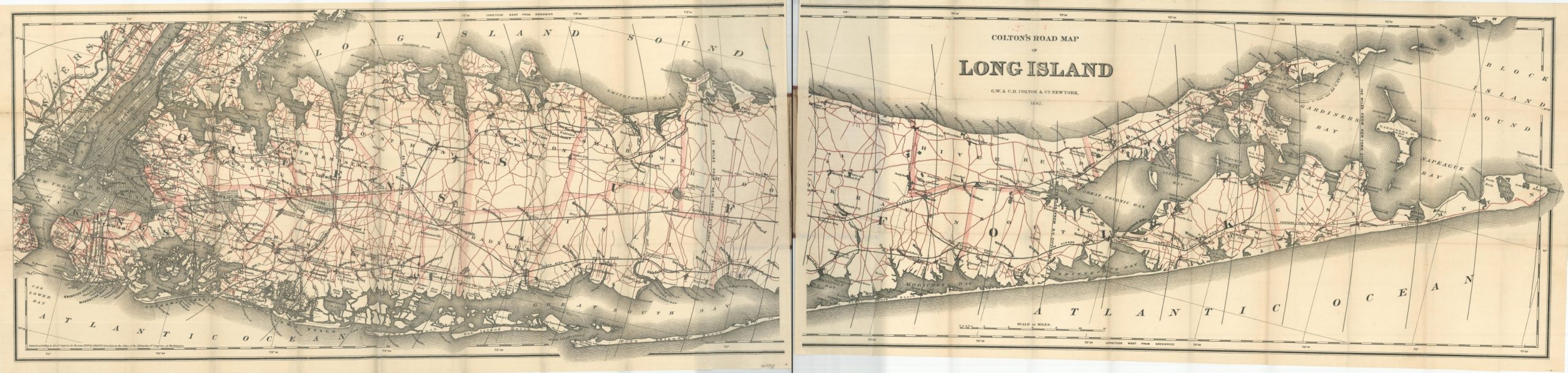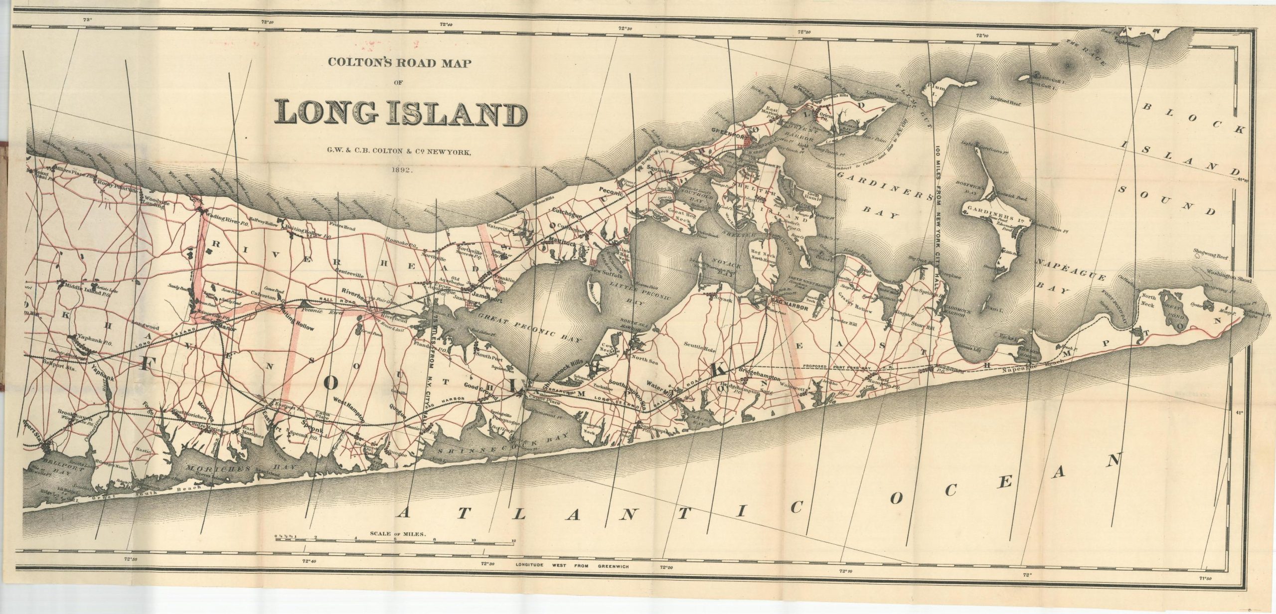 Around the time of publication, Long Island was becoming a summer refuge for wealthy residents of New York City and the map reflects an increasing contemporary trend of urbanization and development. Though there were a few early automobiles puttering around the streets of New York City, the indicated roads were primarily of use by horse-drawn carriages and bicyclists.