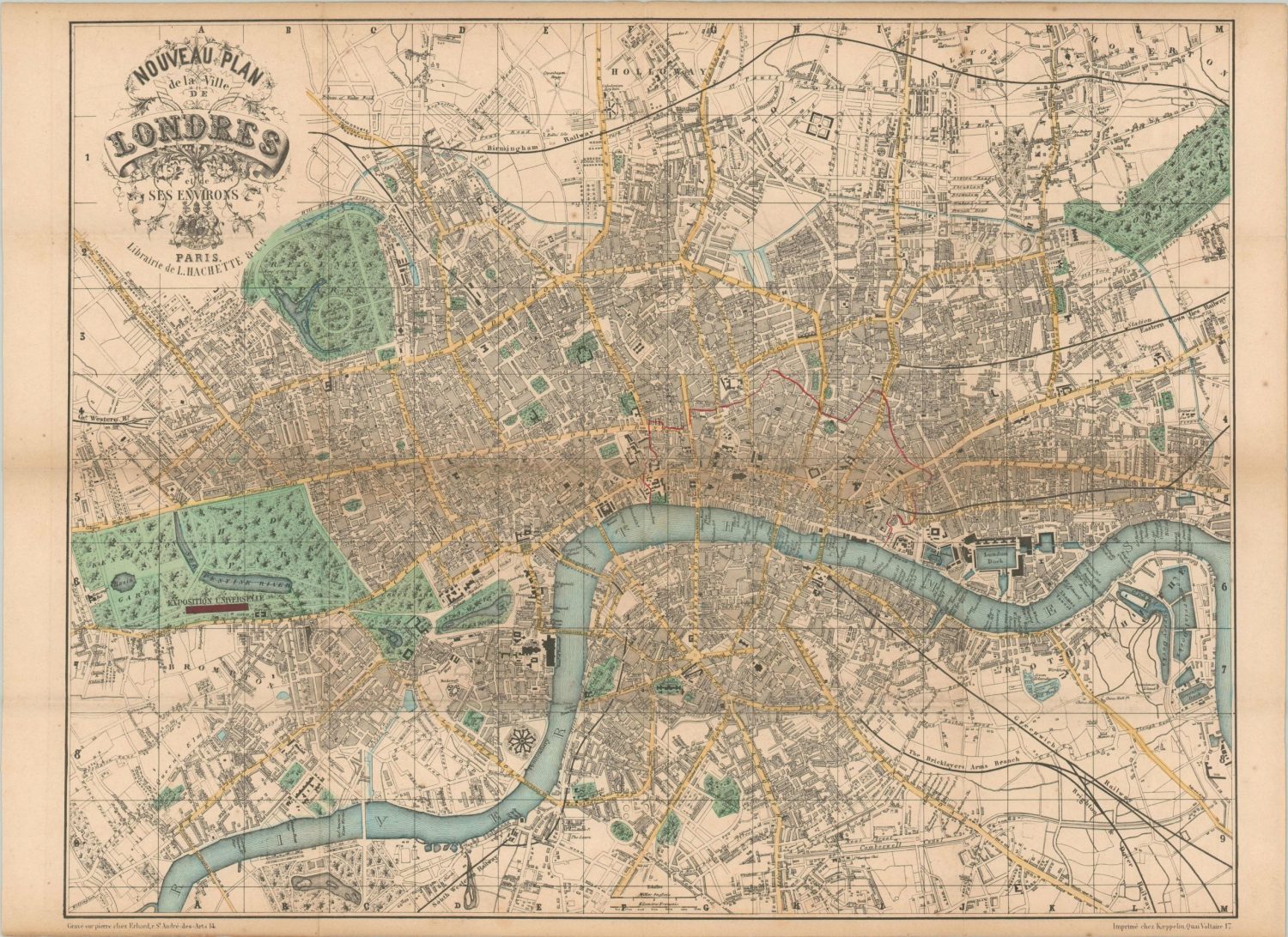 The map was engraved by Erhard and printed by Kaeppelin for inclusion in the Guide du Voyageur a Londres, published in Paris by the Librairie de L. Hachette et Cie. The firm continues to operate today as Hachette Livre, the largest publishing company in France.