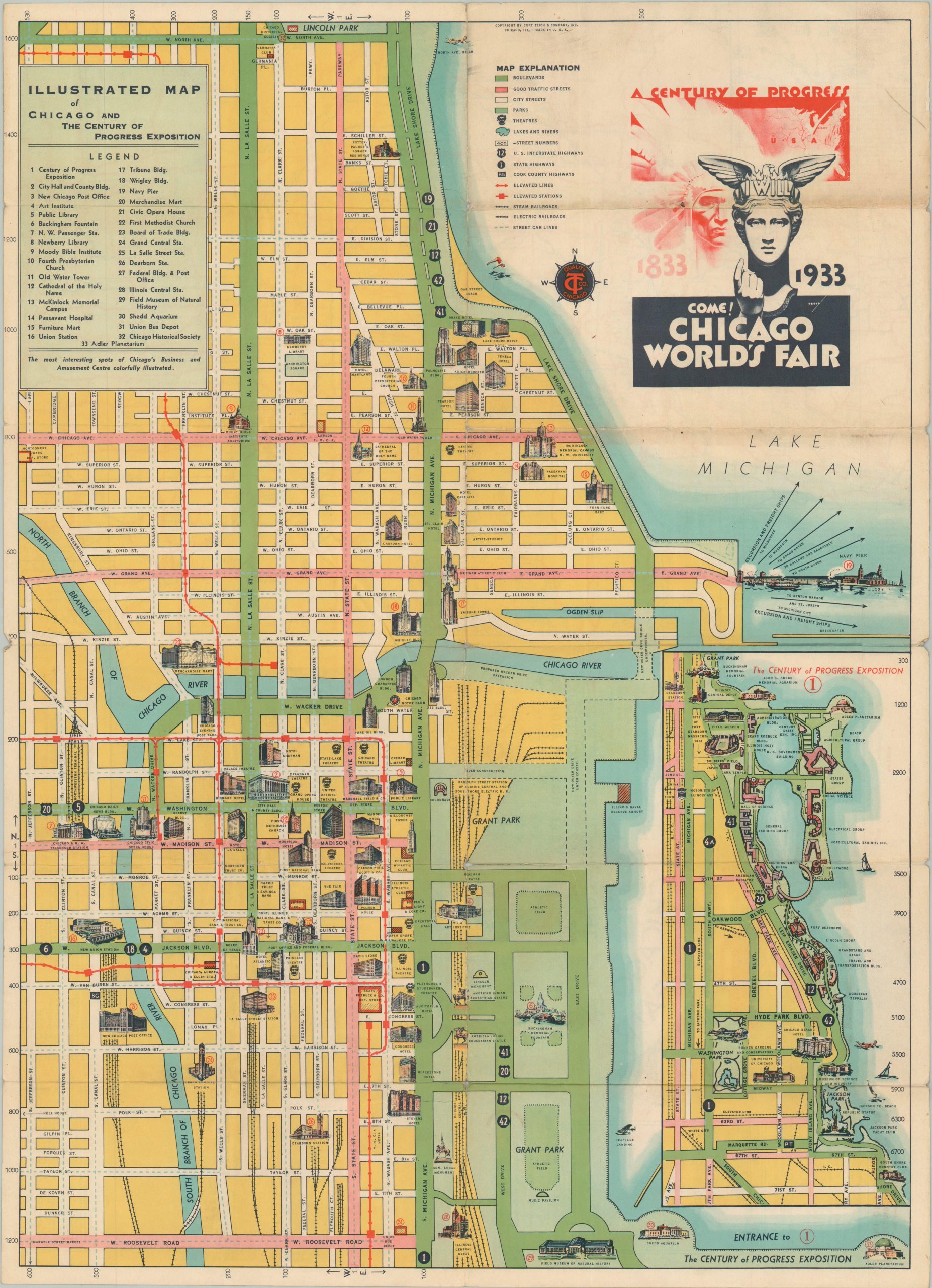 Illustrated Map of Chicago and the Century of Progress Exposition