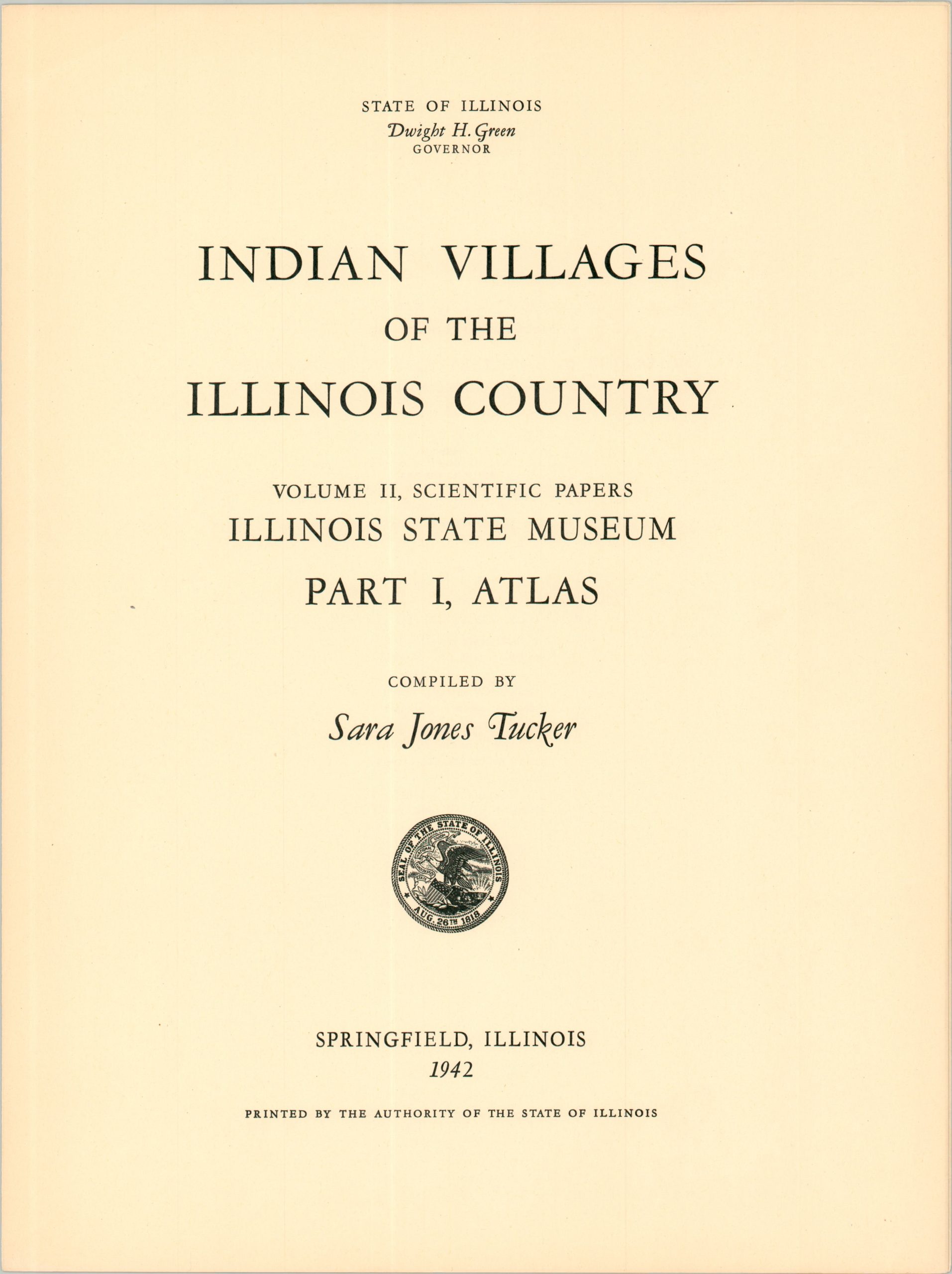 The collection was compiled by historian and University of Chicago employee Sara Jones Tucker, who was hired at the university in the early 1940s to organize the materials within the Ethno-History collection. This work formed the backbone of the volume. Published by the Illinois State Museum in 1942 as Part I (the Atlas), of the Scientific Papers, Volume II.