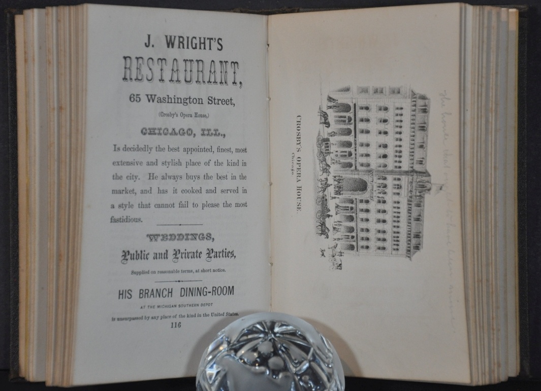The map was published and lithographed in Chicago by Edward Mendel in 1867 and was designed to accompany A Guide to the City of Chicago by T. Ellwood Zell & Company. The guidebook is included and contains nearly 200 pages of information, advertisements, and illustrations. Notable examples include views of Chicago from 1830 and 1868, the University of Chicago, and the Sherman House Hotel.