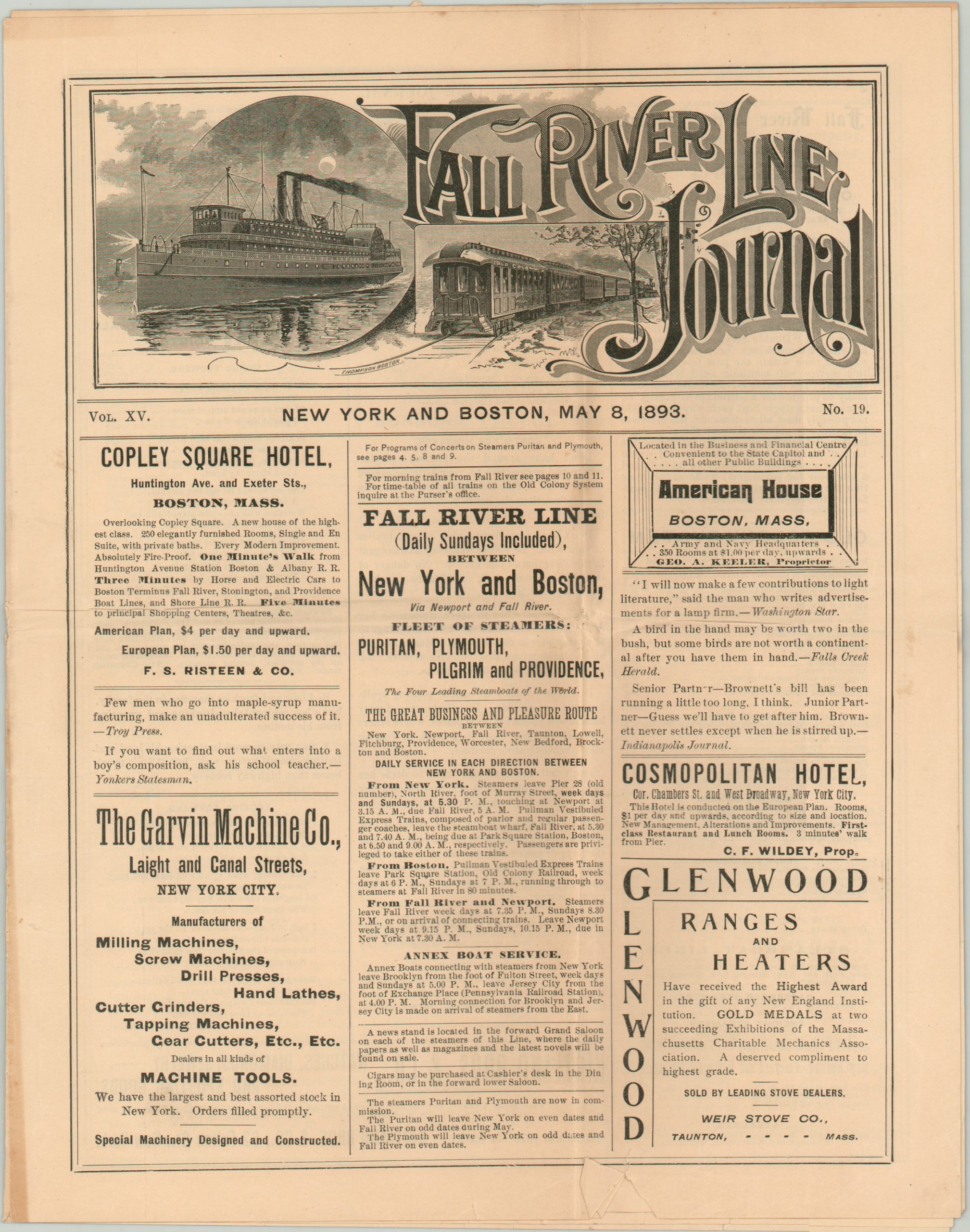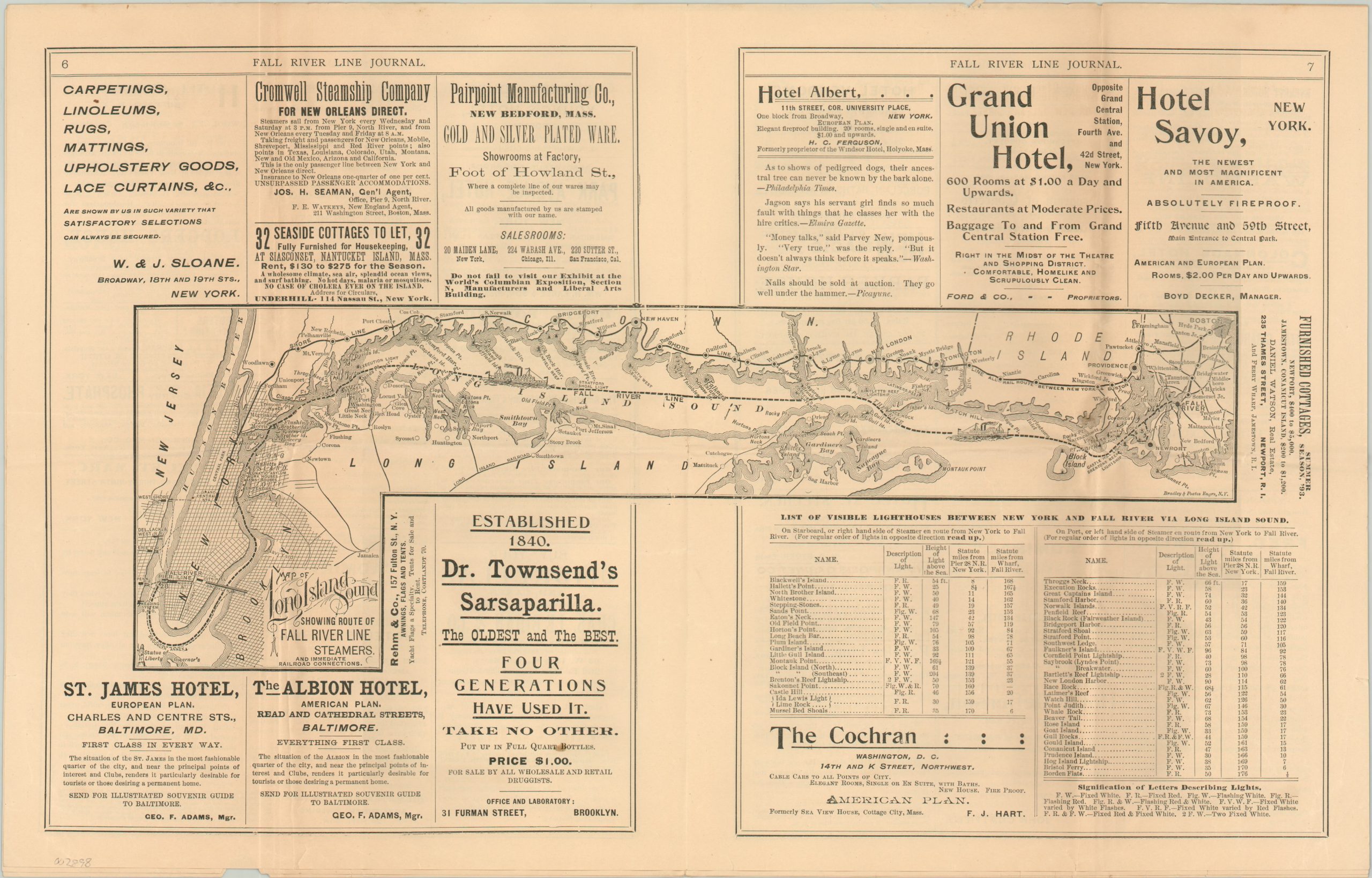 May, 1893 issue of the Fall River Line Journal with a centerfold map of summer steamer excursions.