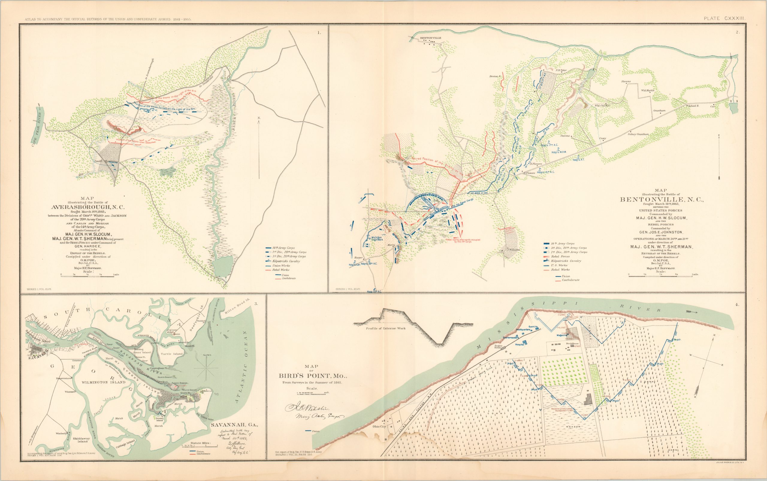 Map Illustrating the Battle of Averasborough, S.C.; Map Illustrating the Battle of Bentonville, N.C.; Savannah, Ga.; Map of Bird’s Point, Mo.