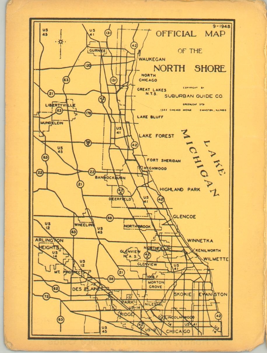 Scarce postwar pocket map of Evanston, Illinois and Northwestern University.