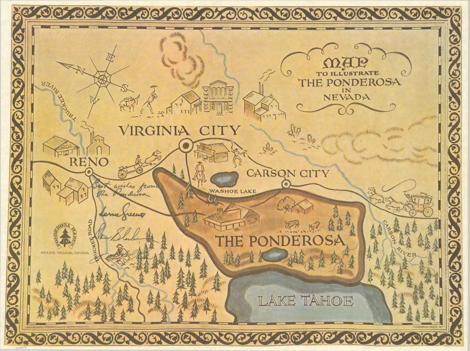 A map of the Ponderosa in Nevada, fictional home of the hit television series Bonanza.