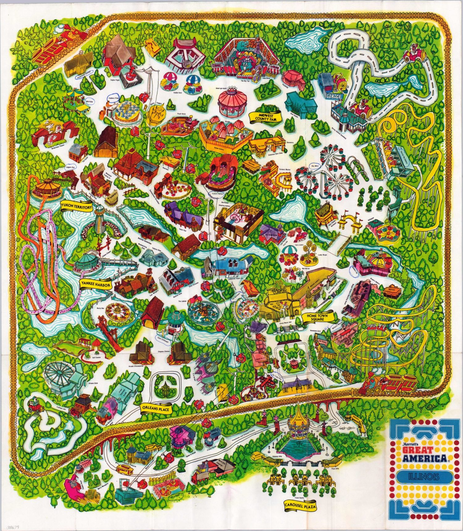 Pictorial poster map issued the opening year of Marriott’s Great America Illinois, known today as Six Flags Great America.