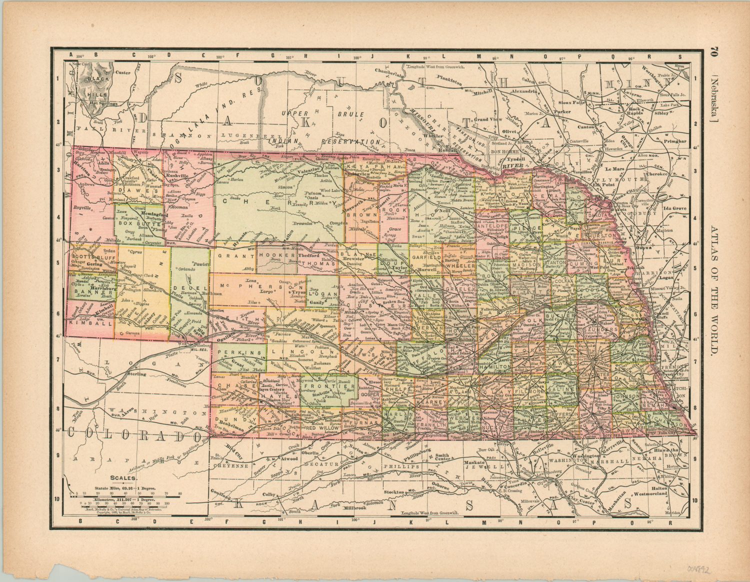 Late 19th-century map of Nebraska and Colorado.