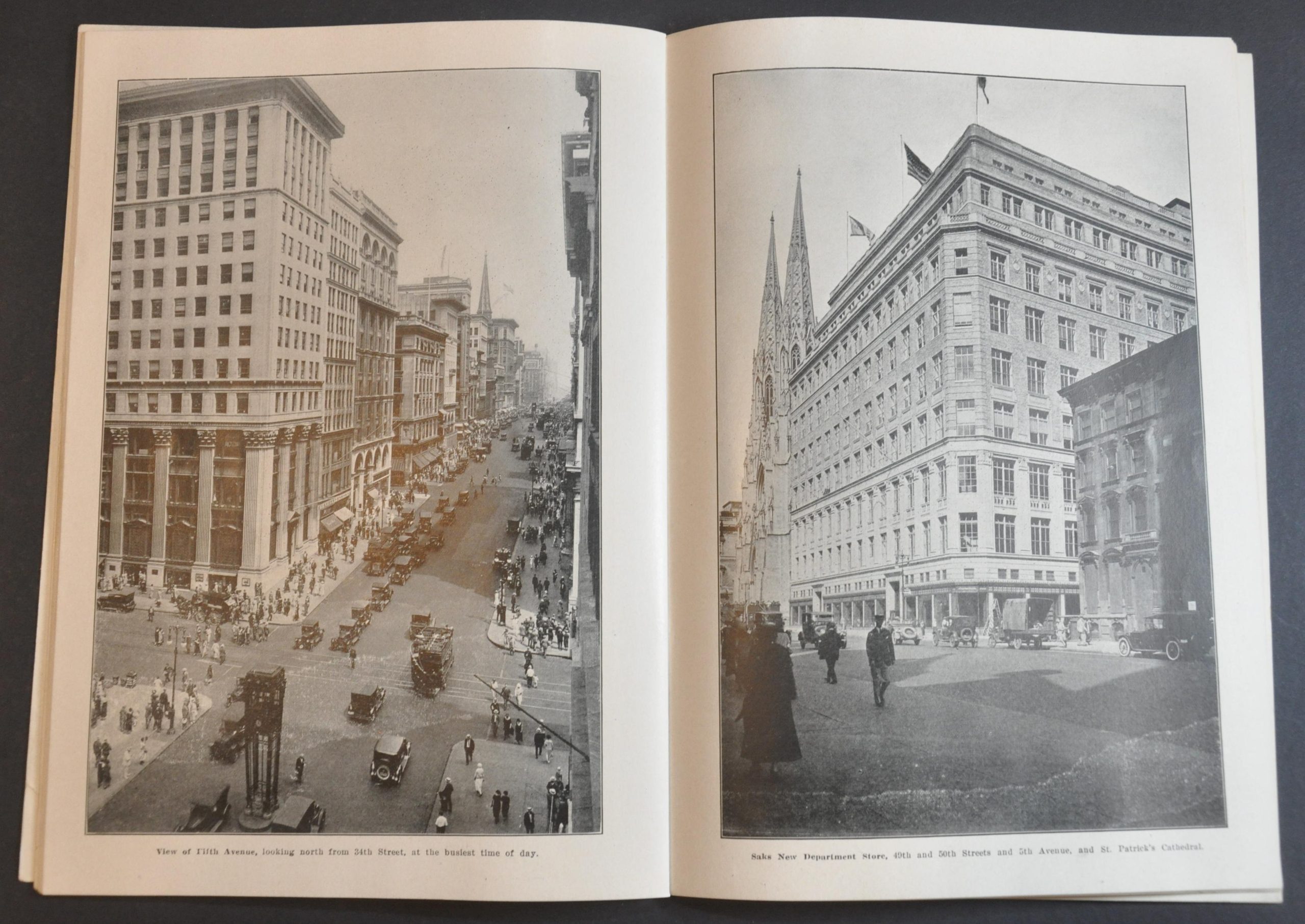 Travel back in time with this intriguing pictorial guidebook of New York City, published around 1922 by the Manhattan Post Card Company. Dozens of captioned images highlight many of the Big Apple’s most iconic features including statues, bridges, skyscrapers, hotels, parks, and more.