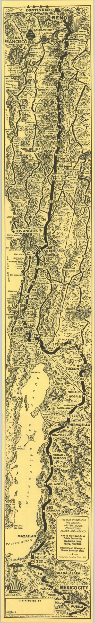 Strip map of a proposed Pan-Am West International Highway, sponsored by a Reno casino.