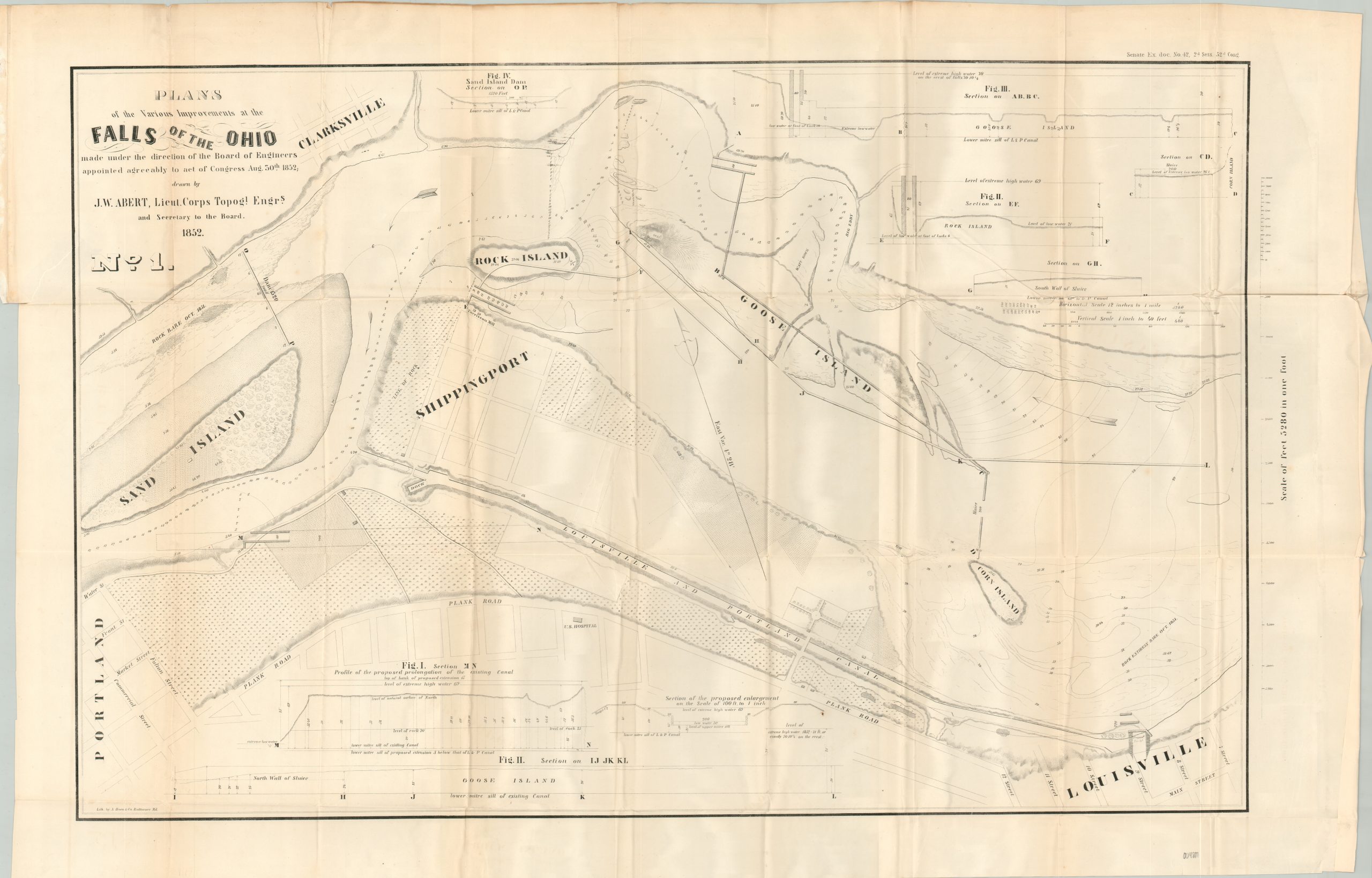 Situated between Louisville, Kentucky and Clarksville, Indiana lies the Falls of the Ohio, a natural rock formation that was one of the few barriers to navigation on the Ohio River in the early 19th century. Both cities grew from trade in the portage business, but it was quickly recognized that an alternative solution was needed to maximize economic growth. The privately owned Louisville and Portland Canal opened for traffic in 1830, but by the early 1850s a significant portion of river traffic was too large to fit through the channel. Federal improvements were constantly necessary to maintain its efficacy, and by 1855 a total buyout by the government was completed.