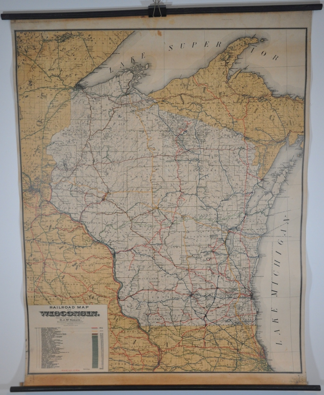 The map was prepared under the direction of D.J. McKenzie and published in Milwaukee in 1898 by the Railroad Commission of Wisconsin.