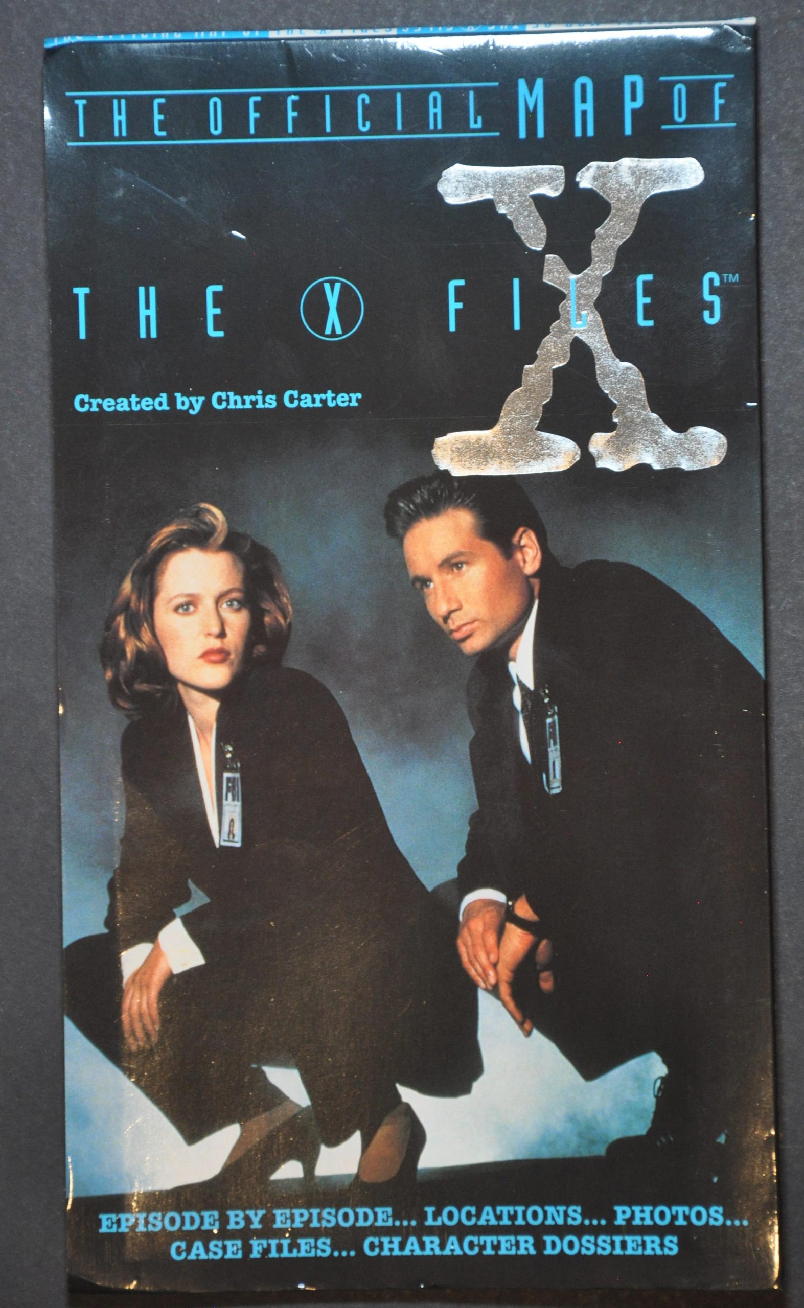 This large folding map of North America was published in 1998 by 20th Century Fox. It pinpoints the various locations where weird and mysterious happenings took place throughout the first three seasons of the The X-Files. Aliens in Washington, UFO crash site in Wisconsin, and a mysterious plague in Virginia are among the dangers encountered by Special Agents Scully and Mulder. Biographies for the iconic characters are provided in the upper left.