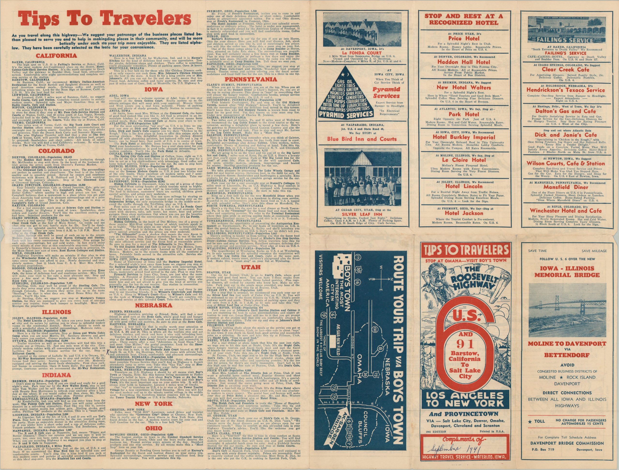 Tips To Travelers The Roosevelt Highway U.S. 6 and 91