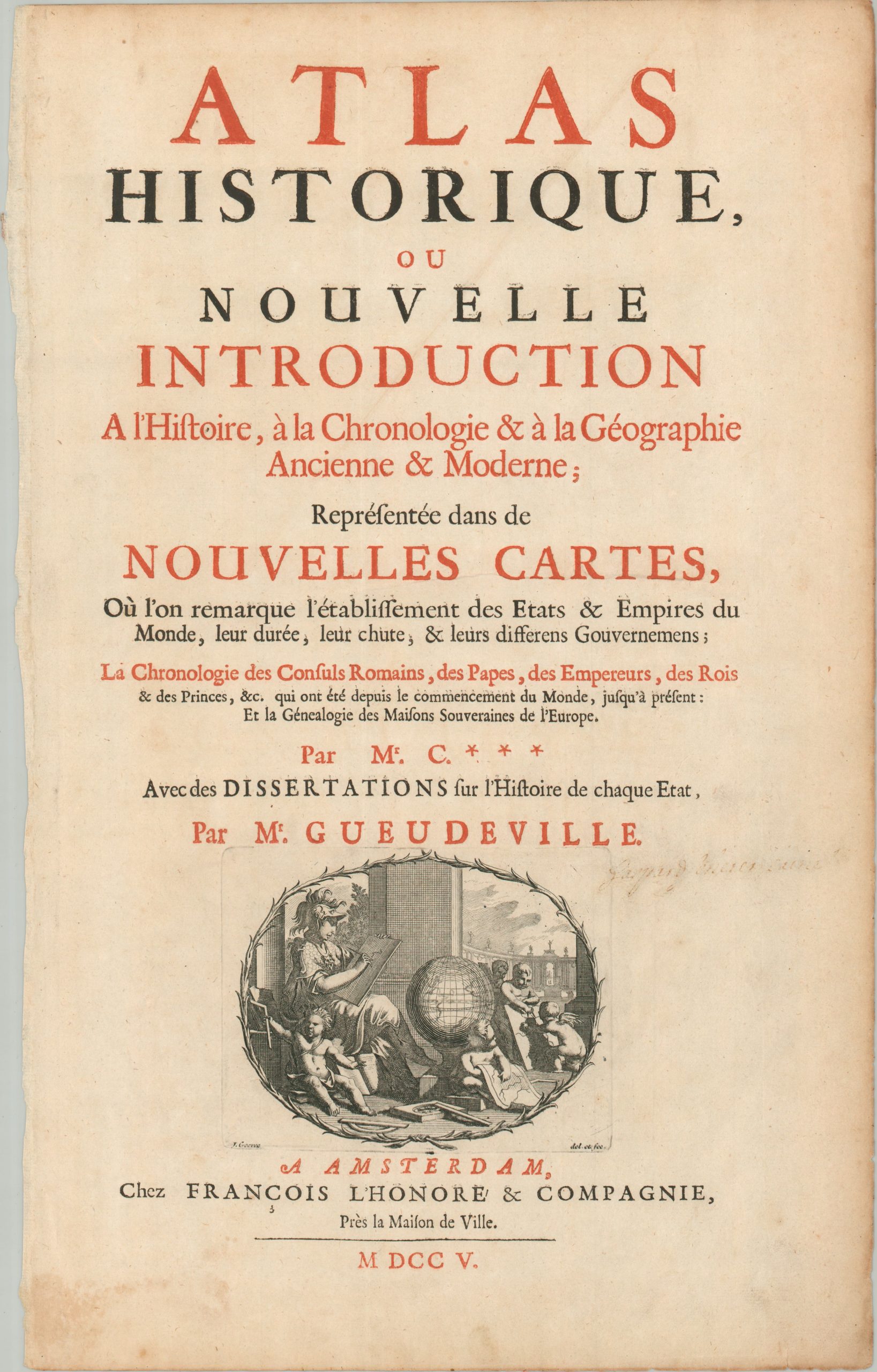 Title pages from the first edition of Atlas Historique.