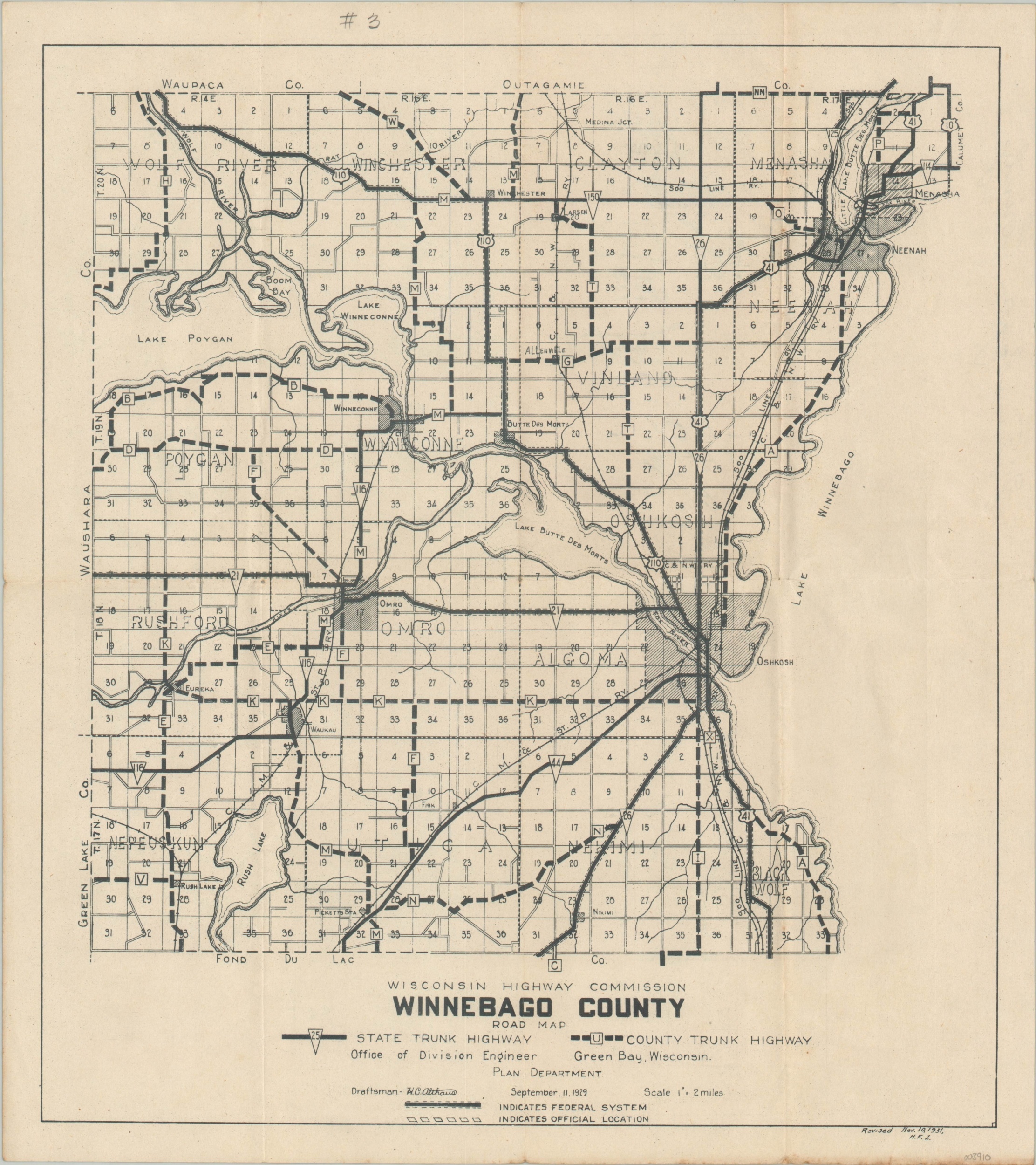 Originally designed by H.C. Althaus and published by the Wisconsin Highway Commission in 1929 in Green Bay. This example was revised to 1931 by M.F.Z., according to the note in the lower right.